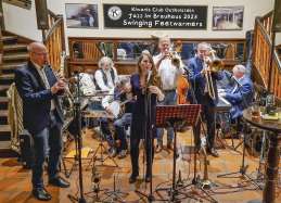 EUTIN. Am 28. April fand das lang erwartete Musikevent „Jazz im Brauhaus“ vom Kiwanis Club Ostholstein statt. Nach drei Jahren Pause aufgrund der Corona-Pandemie konnte der Jazz-Abend endlich wieder stattfinden. Die sieben Vollblutmusiker der Swinging Feetwarmers Jazzband um Bandleader Gernot Johl spielte auf und bot den Jazzfans ein umfangreiches Repertoire von Swing, Dixieland bis hin zu Jazz interpretierten Musicalhits. Als echte Bereicherung für das Programm erwies sich Sängerin Alexandra Rotmann. Mit ihrer temperamentvollen Art und einer facettenreichen Stimme begeisterte sie mit der Band das Publikum.