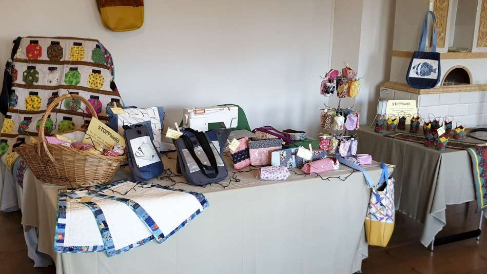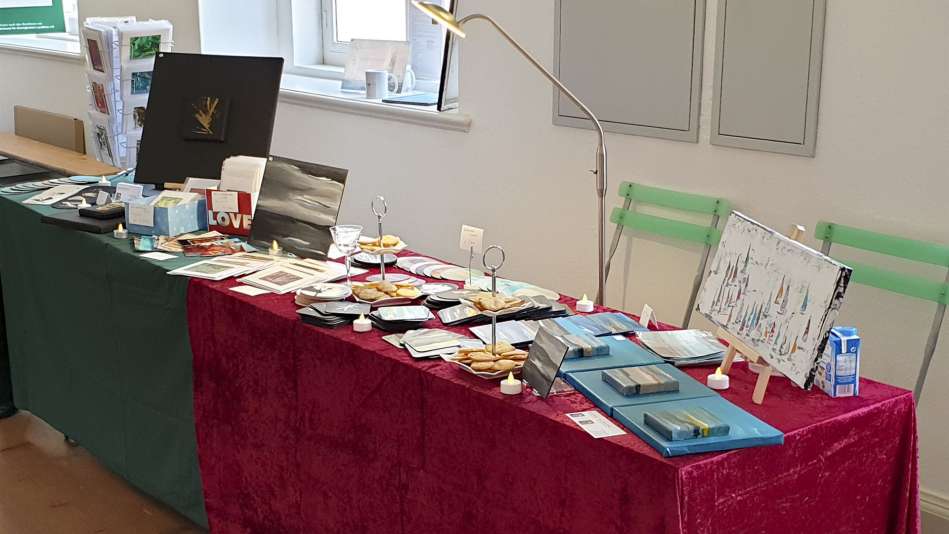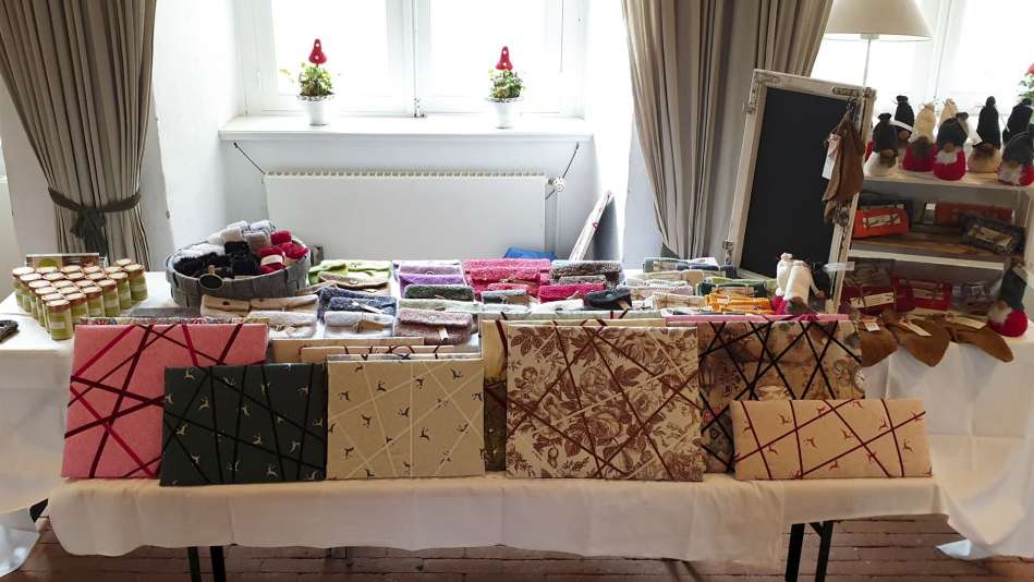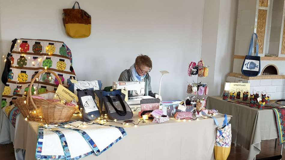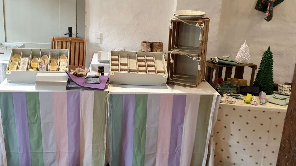 Karten, Holzständer mit Kerzen, Dekoartikel, Kinderbekleidung, Handgefertigte Goldschmiedearbeiten, Karten und Meehr, „Fien Tüch“ - Furoshiki, Tücher und vieles mehr, Tassen mit Beleuchtung und Dekoartikel, Patchwork & Schönes aus Stoff, Dekoartikel, Kalender, Arbeiten aus Papier und Verpackung, Weihnachtsgestecke & Laternen, Malerei/Spachteltechnik, Upcycling Dekoflaschen, genähte Waschlappen, Brillenetuis, Geschenkartikel, Kerzen, Kränze & Deko, Silber & Meehr, Selbstgemachte Pralinen, Buchbindearbeiten und Kartonagen, Handgenähte Kissen, Trekkerkissen und Weihnachtsdeko