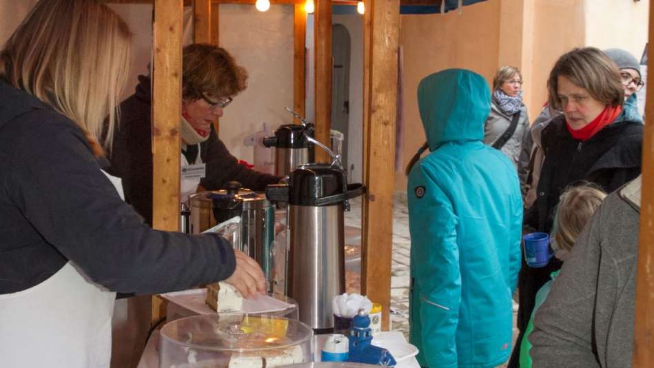 Für das leibliche Wohl ist gesorgt. Glühwein, wer mag mit Schuss, Kinderpunsch oder einen heißen Kakao, Wein & Prosecco sowie verschiedene Softdrinks gegen den Durst. Auch in diesem Jahr servieren wir die schmackhafte Grillwurst aus der regionalen Landschlachterei, dazu leckere Pommes, Schmalzbrote und eine heiße Erbsensuppe, wer mag mit einem knackigen Wiener Würstchen. Unser reichhaltiges Kuchenbuffet lädt ein zu Kaffee, Torten und Kuchen, dazu selbstgemachte heiße Waffeln.